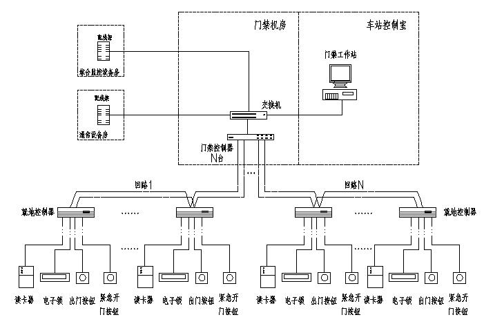 地铁门禁安防系统对各区域门禁系统进行管理,实现门禁系统全线设备的控制和所有区域的数据采集、统计功能以及中央级管理、授权、维护等功能。 系统按照两级管理、三级控制的原则进行设置,就地级安防主机负责就地数据的采集、转换、本地存储及上传。中央级安防主机对各个车站及车辆段门禁系统进行监控。